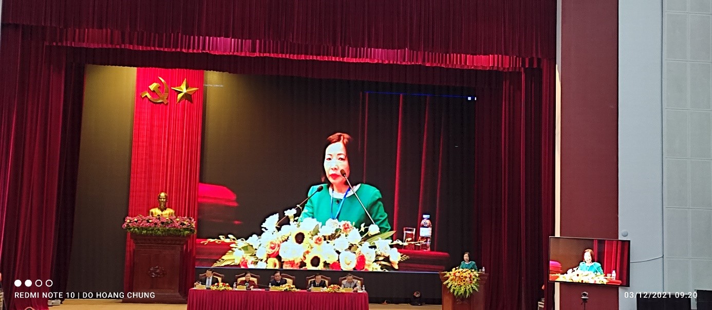 Bà Giàng Páo Mỷ (Bí thư tỉnh ủy Lai Châu) phát biểu chào mừng tại Hội nghị