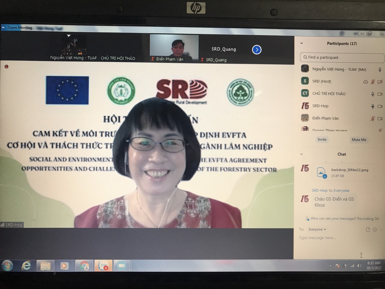 Trung tâm Phát triển Nông thôn bền vững (SRD) phối hợp với Đại học Lâm nghiệp tổ chức lớp hội thảo tập huấn “Nội dung Những cam kết về môi trường, xã hội trong Hiệp định EVFTA cơ hội và thách thức trong thực hiện tại ngành lâm nghiệp” với mục tiêu Nâng cao năng lực cho các tổ chức xã hội trong mạng lưới VNGO-EVFTA và các đơn vị có liên quan về các nội dung cam kết tại Hiệp định EVFTA, những cơ hội và thách thức trong thực thi tại ngành lâm nghiệp Việt Nam.