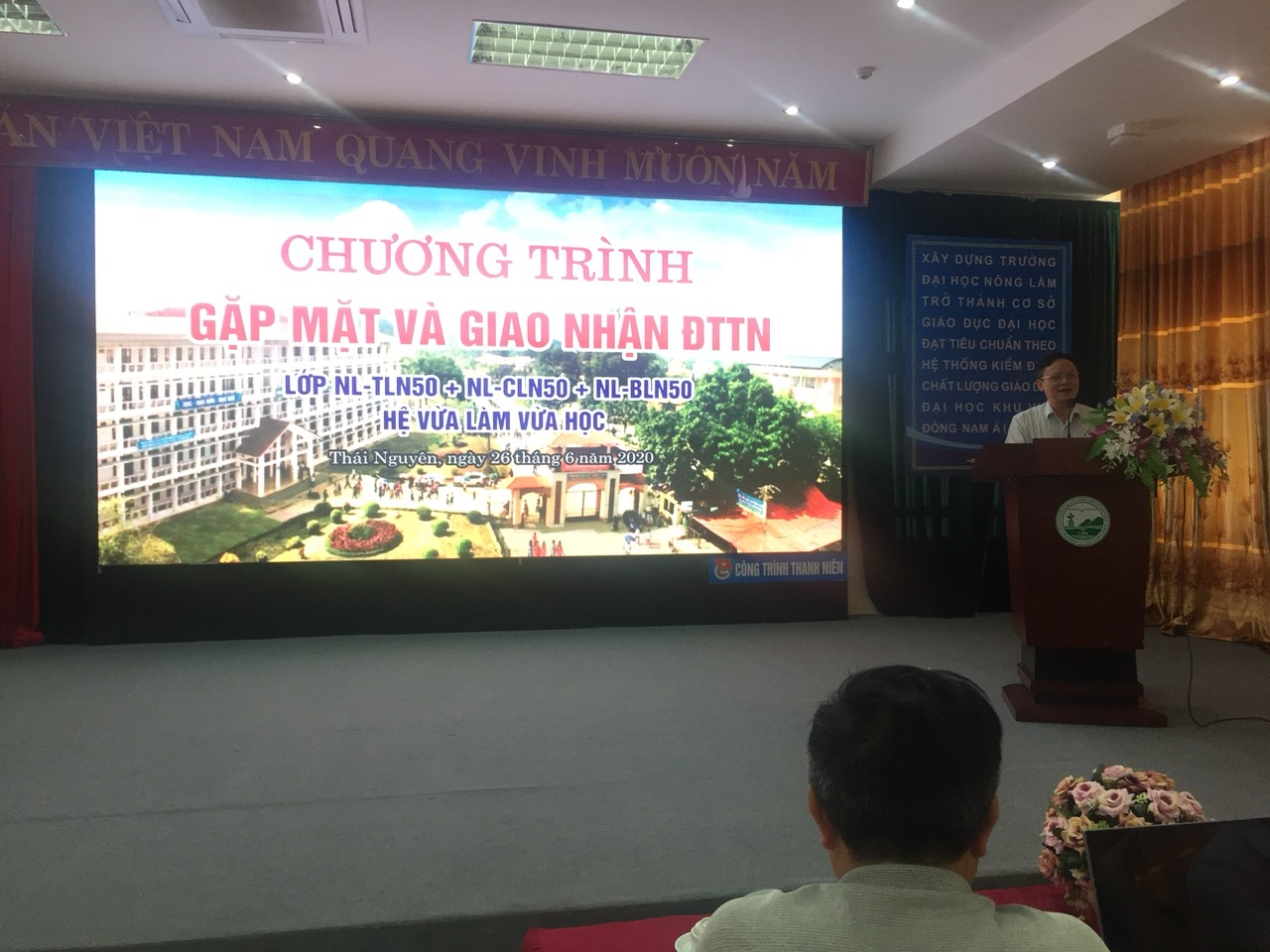 Ngày 26/6/2020 Trung tâm đào tạo theo nhu cầu xã hội và khoa Lâm nghiệp tổ chức buổi giao nhận đề tài cho sinh viên hệ VLVH đặt tại Phân hiệu Lào Cai. Đến dự với buổi giao nhận đề tài có Lãnh đạo nhà Trường, Giám đốc Trung tâm Đào tạo theo nhu cầu xã hội và toàn thể thầy cô giáo khoa Lâm nghiệp.