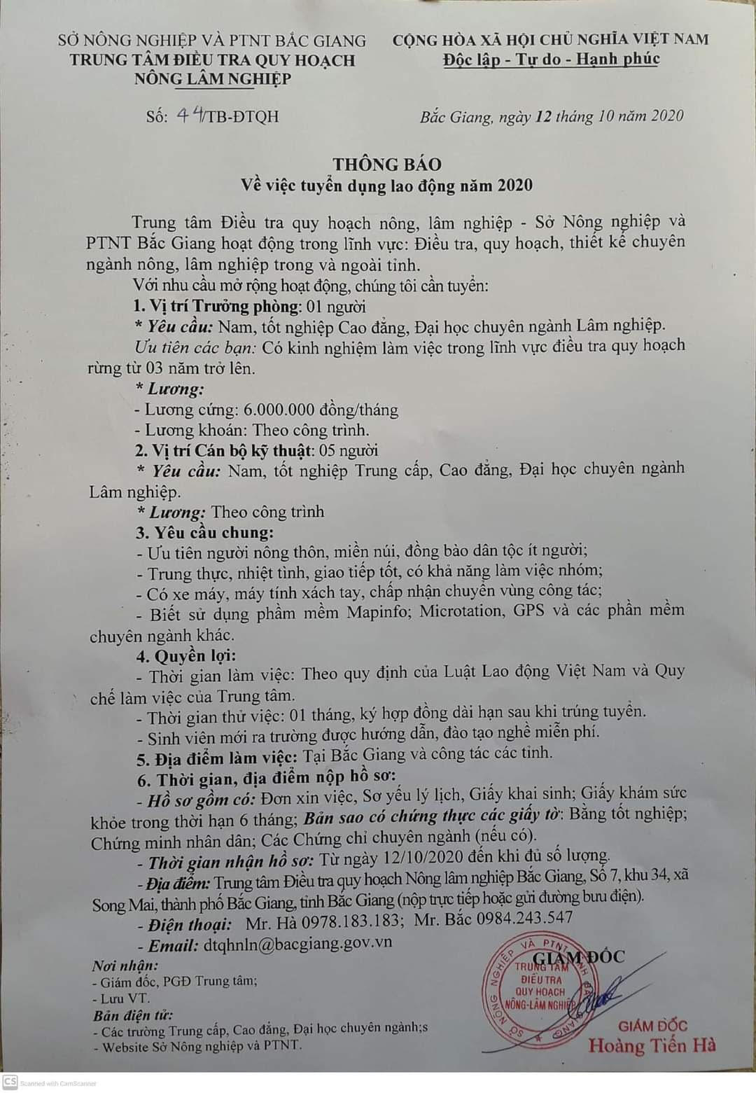 SỞ NÔNG NGHIỆP VÀ PTNT TỈNH BẮC GIANG TUYỂN DỤNG