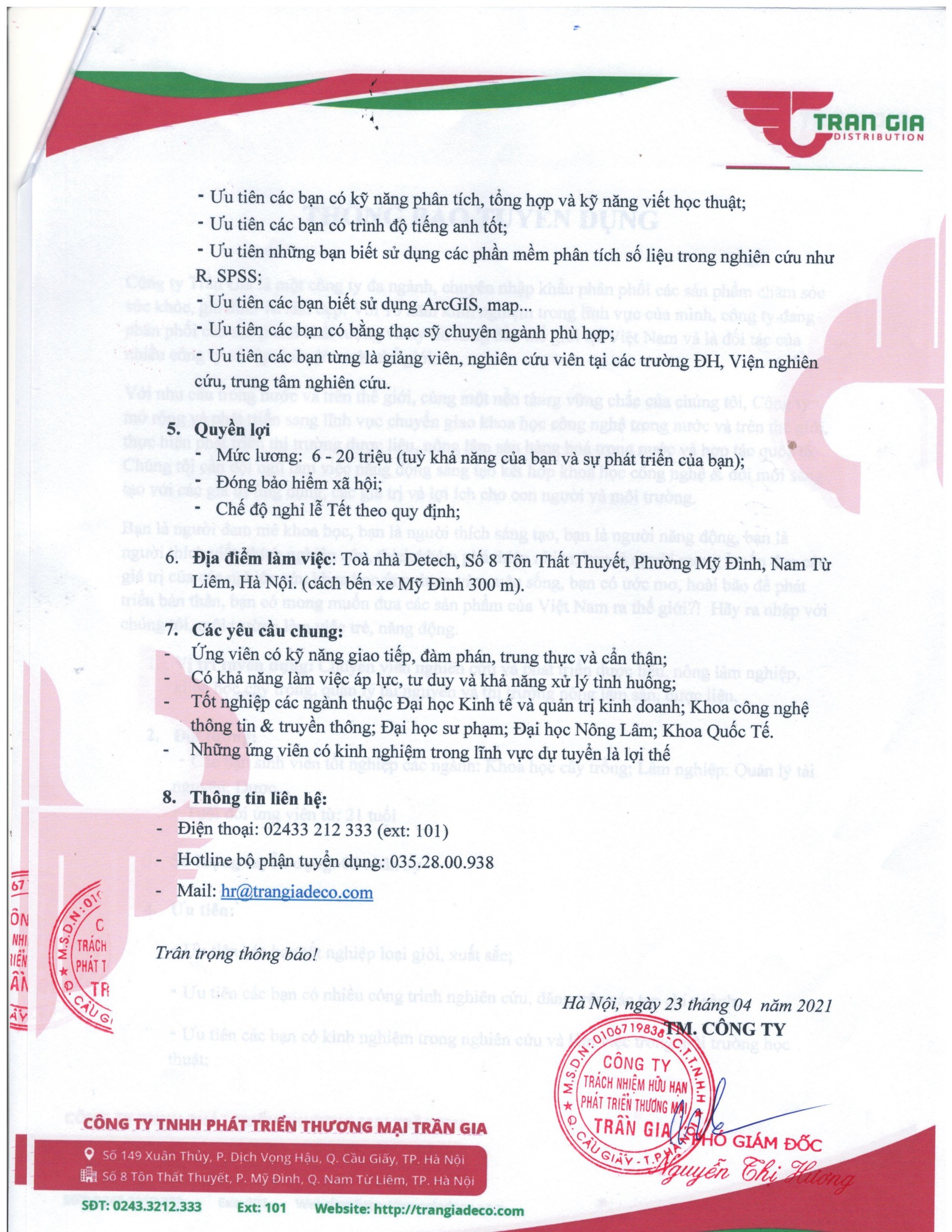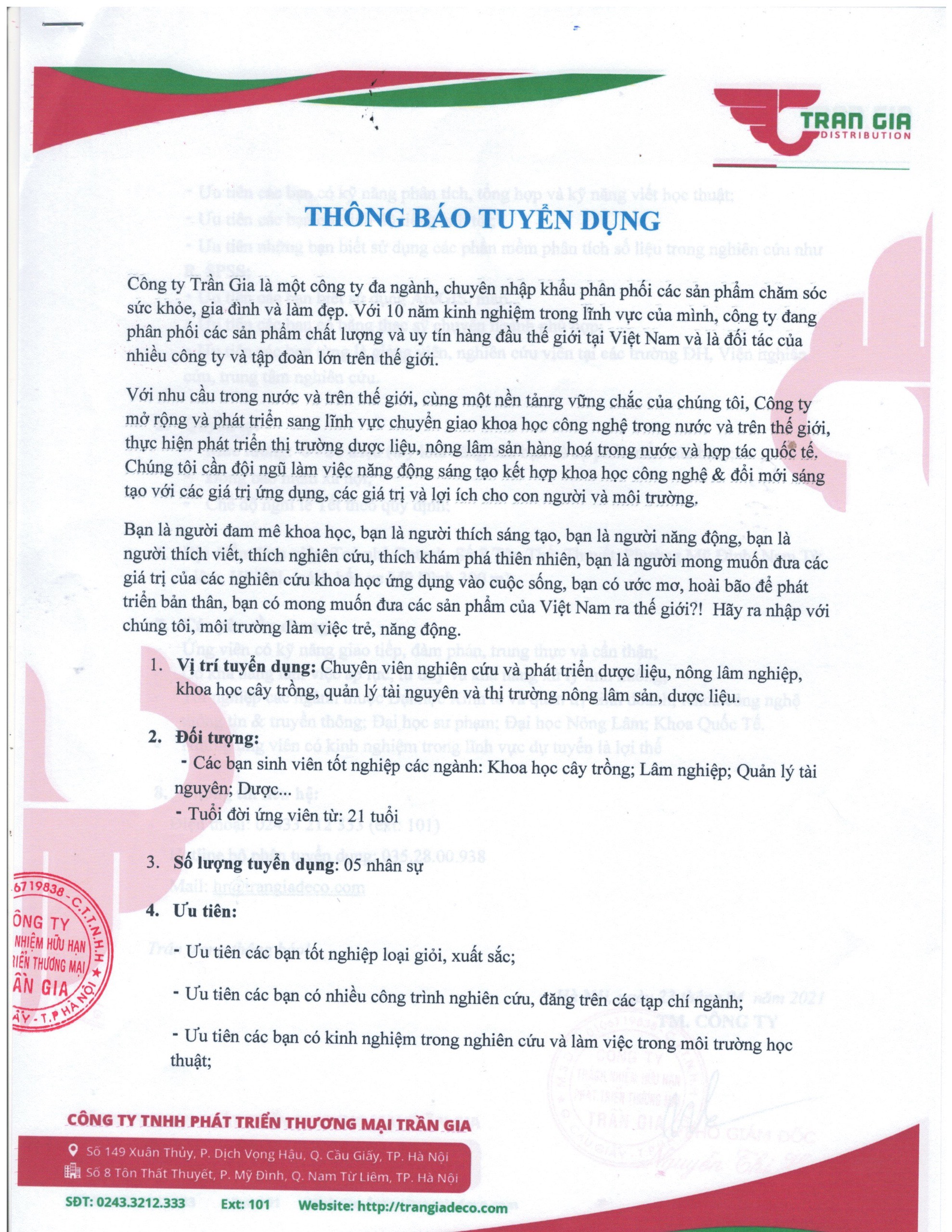 • Tuyển dụng kỹ sư Lâm nghiệp