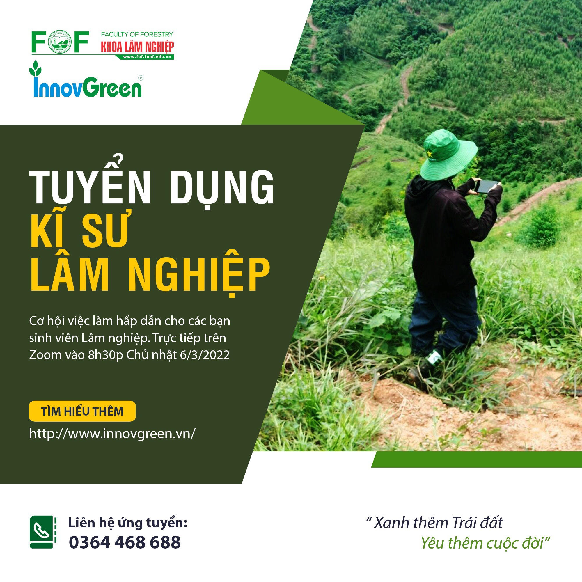 Cơ hôi việc làm hấp dẫn cho các bạn sinh viên khoa Lâm nghiệp. Trực tiếp trên Zoom chủ nhật 6/3/2022. Thời gian: 8h30Theo phần mềm zoom (ID 5488543196, pass 757733)