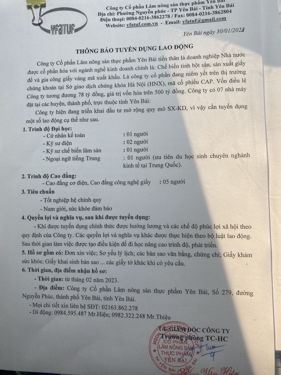 TUYỂN DỤNG KỸ SƯ CHẾ BIẾN LÂM SẢN