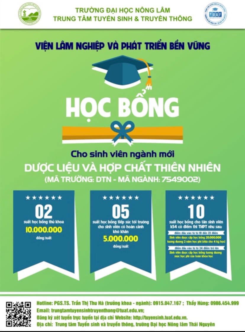 HỌC BỔNG CHO TÂN SINH VIÊN KHOA LÂM NGHIỆP